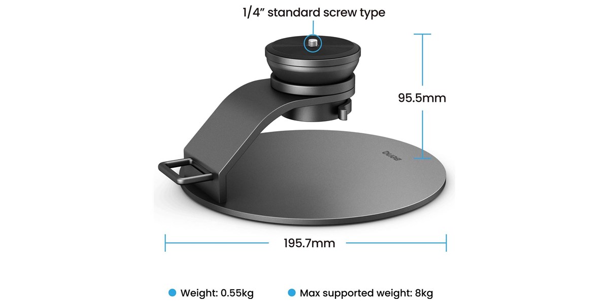 Le BenQ ST30 repose sur une base et un bras de support entièrement métalliques, garantissant une durabilité supérieure et une grande solidité. Le bras de 5 mm d’épaisseur assure une excellente tenue même pour les appareils plus lourds. Des patins en silicone sont intégrés sous la base pour empêcher tout glissement, quelle que soit la surface. Ce design assure à la fois sécurité, durabilité et élégance dans tout type d’environnement.