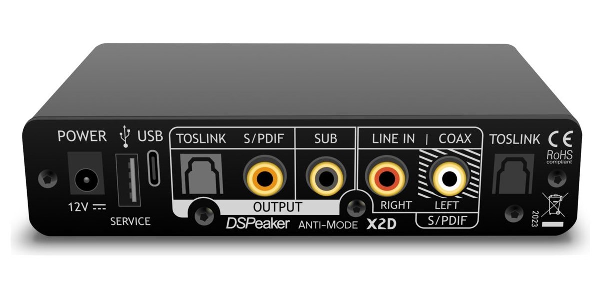 Le DSPeaker Anti-Mode X2D s’intègre facilement dans tout système hi-fi grâce à ses nombreuses entrées et sorties : USB-C, optique, coaxiale, RCA analogique, et sorties numériques. Il prend en charge les flux jusqu’à 24 bits / 192 kHz et permet une sortie dédiée pour caisson de basses. Son format compact et sa faible consommation le rendent discret et efficace, quel que soit votre espace d’écoute.