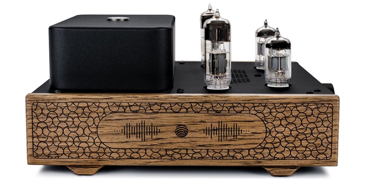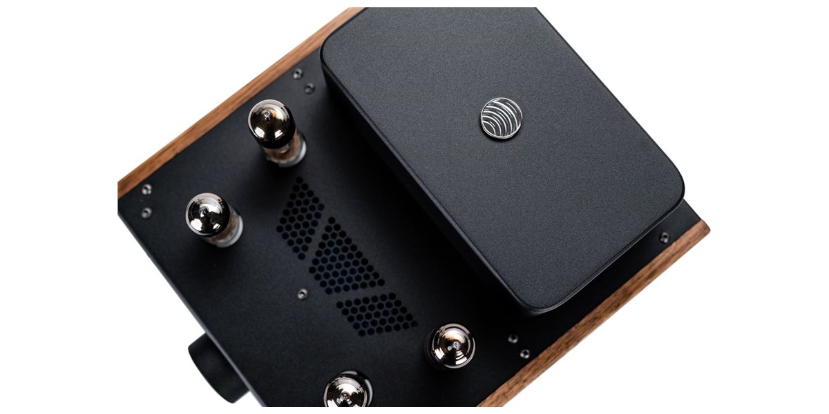 Ce modèle se distingue aussi par son esthétique travaillée : des flancs en bois gravés habillent le châssis en métal pour une intégration élégante dans tout environnement d’écoute. Le transformateur torique est protégé pour limiter les interférences et stabiliser davantage l’alimentation.