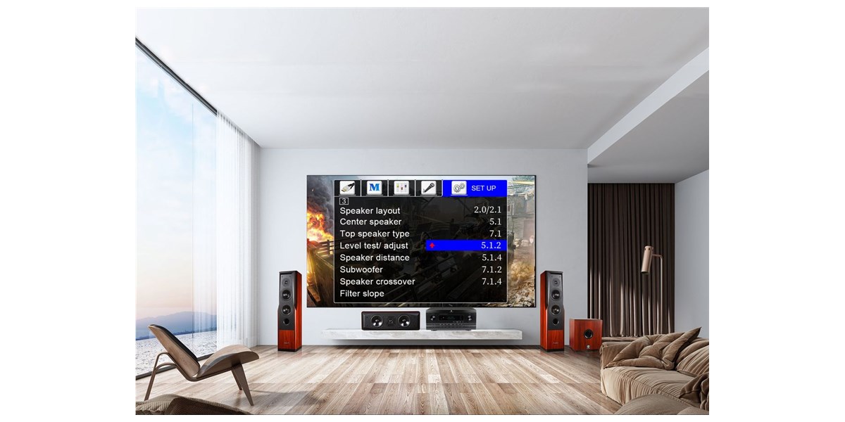 Le système de calibration automatique analyse l’acoustique de la pièce pour ajuster les niveaux, les distances et la réponse en fréquence de chaque enceinte. Cela permet d’obtenir une restitution équilibrée sans réglages complexes. En complément, un égaliseur paramétrique avancé permet d’affiner manuellement chaque canal avec plusieurs bandes de réglage. Cette combinaison assure une adaptation optimale à toutes les configurations.