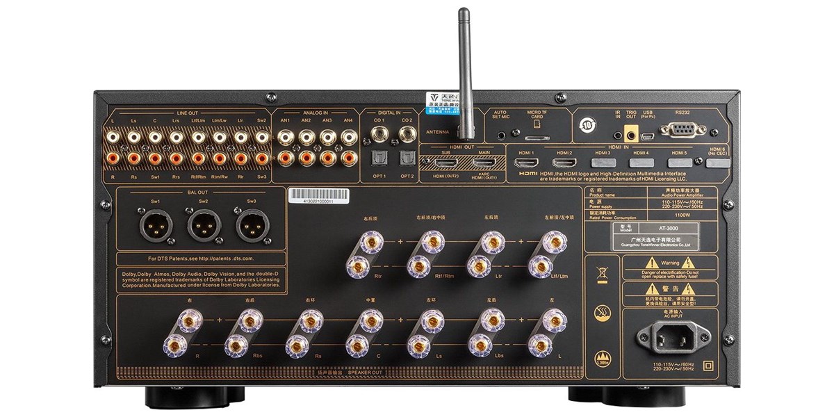 Compatible Dolby Atmos, Dolby TrueHD et DTS:X, il restitue des bandes-son cinéma avec une spatialisation tridimensionnelle précise et enveloppante. Sa section de pré-amplification multicanale gère jusqu’à 14 canaux indépendants avec sorties dédiées pour trois caissons de basses. Il devient ainsi possible de concevoir des installations ambitieuses en 7.3.6 ou 9.3.4 canaux en ajoutant des amplificateurs de puissance externes.