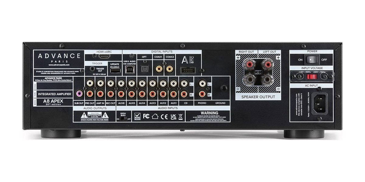 Grâce à son entrée HDMI eARC, l’A8 Apex s’intègre facilement à une installation télévisuelle, avec contrôle du volume depuis la télécommande du téléviseur. Il se connecte aussi bien à une platine vinyle qu’à un lecteur réseau ou un ordinateur, assurant une polyvalence remarquable.