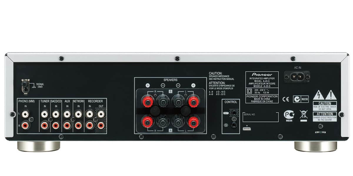 L’amplificateur stéréo intégré A20-S de Pioneer en finition argent développe une puissance de 2 x 50 Watts sous 4 Ohms.
