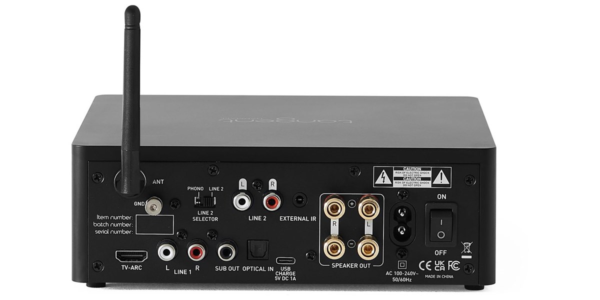 Avec une entrée HDMI ARC compatible CEC, l’ampli s’intègre parfaitement à votre installation télévisuelle : un seul câble suffit pour le relier à votre TV, avec contrôle du volume via la télécommande de celle-ci. En complément, deux entrées RCA sont disponibles, dont une commutable phono pour platine vinyle, ainsi qu’une entrée optique pour les sources numériques. Une sortie subwoofer permet également de renforcer les basses fréquences.