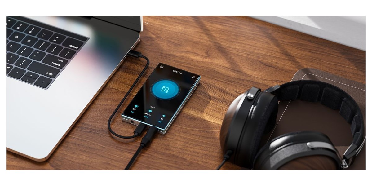 Le baladeur propose une grande flexibilité d’utilisation grâce à ses différentes options de connexion. Les sorties casque peuvent être configurées en niveau ligne pour une intégration dans un système hi-fi. La sortie mini-jack peut également servir de sortie coaxiale pour l’utilisation avec un DAC externe. Le port USB-C permet quant à lui une recharge simple ainsi qu’une utilisation en tant que DAC USB avec un ordinateur ou un NAS.