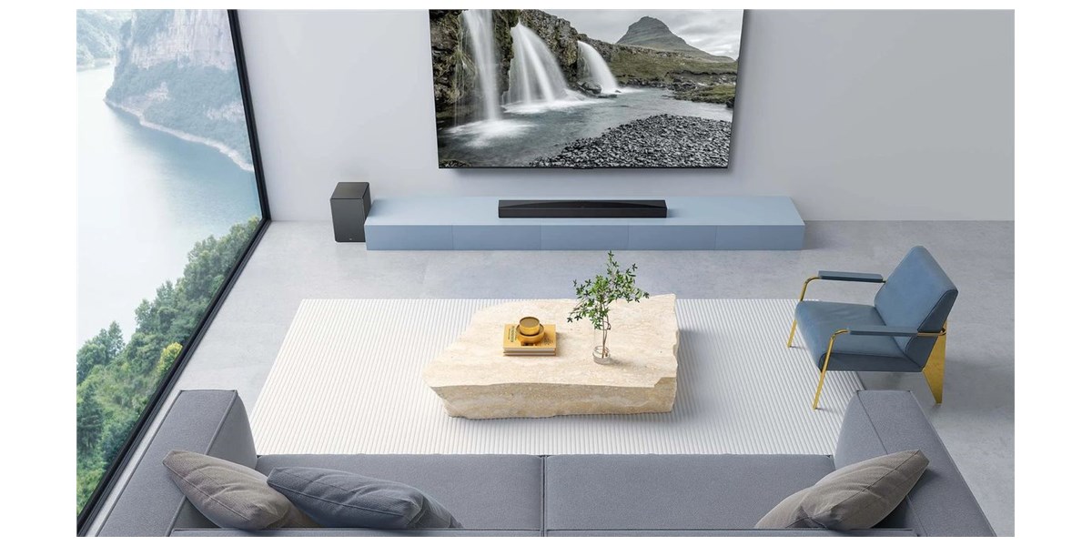 Conçue pour offrir une expérience audio cinéma à domicile exceptionnelle, la TCL Q65H combine un design raffiné avec des technologies acoustiques de pointe. Dotée d’un système 5.1 physique, elle propose un son tridimensionnel sans nécessiter d’enceintes satellites supplémentaires. Sa puissance totale de 580 W, ses technologies Ray•Danz, Dolby Atmos, DTS:X, ainsi que son caisson de basses sans fil assurent une immersion sonore complète, aussi bien pour les films que pour les jeux et la musique. Grâce à ses nombreuses options de connectivité et à son calibrage intelligent AI Sonic, elle s’intègre facilement dans n’importe quel environnement.