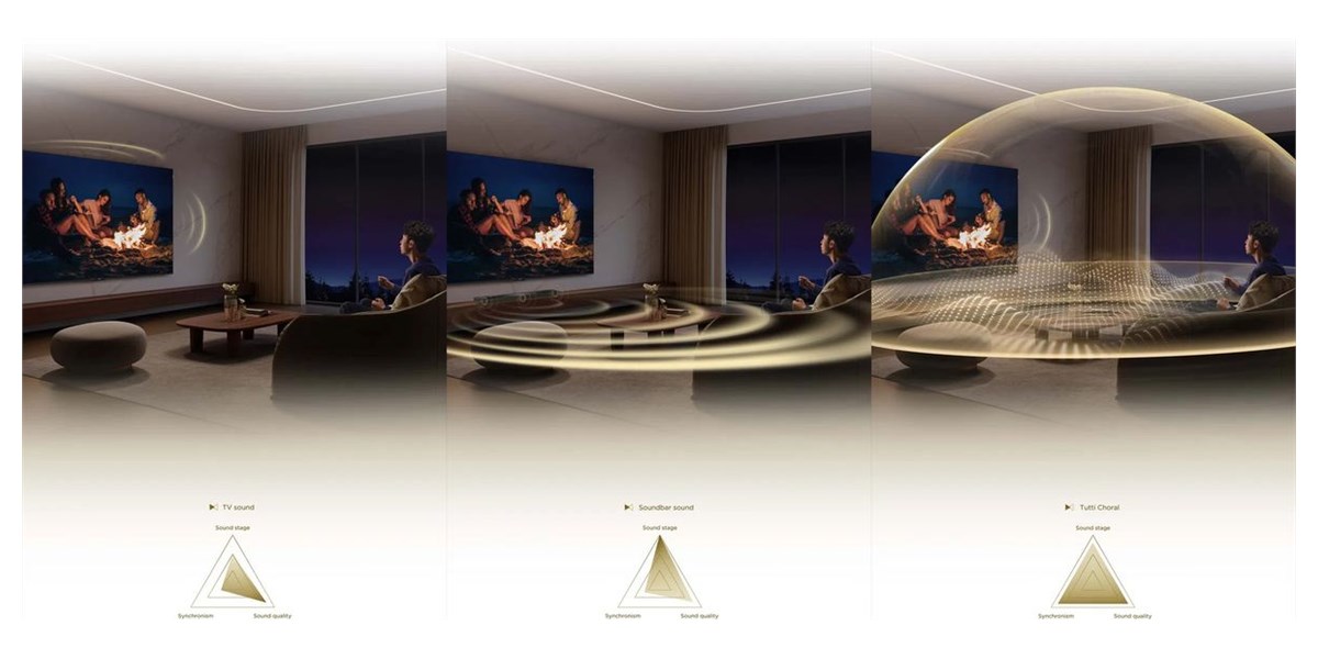 Avec ses 580 W, ses huit haut-parleurs calibrés et son caisson de basses sans fil, la TCL Q65H restitue un son dynamique et équilibré. L’intervention des experts Golden Ear garantit une précision remarquable dans les aigus comme dans les graves.