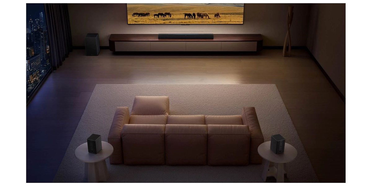 Le caisson de basses sans fil de 200 W descend jusqu’à 45 Hz, offrant des impacts profonds et nets. Les satellites arrière élargissent la scène surround avec précision. Le tout fonctionne sans câbles encombrants, pour une installation simple et un son parfaitement immersif.