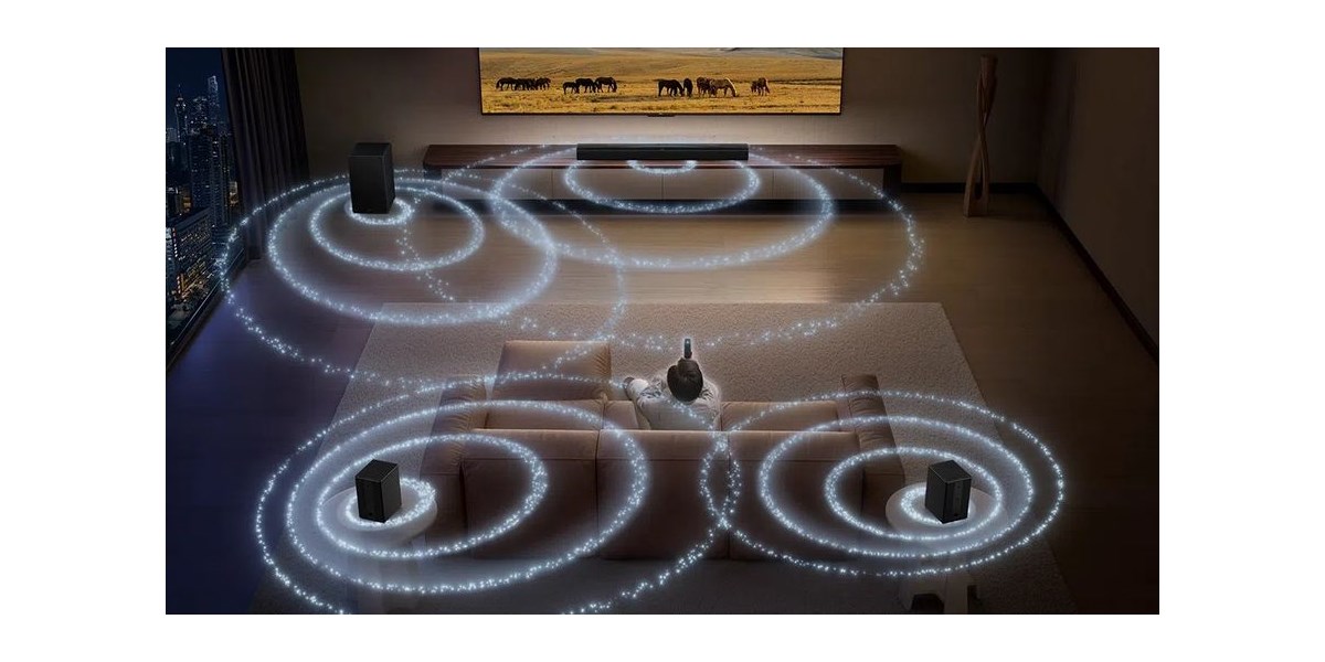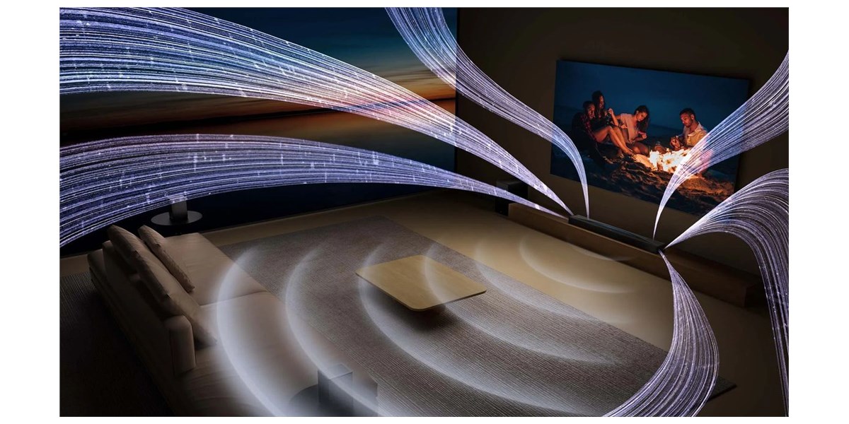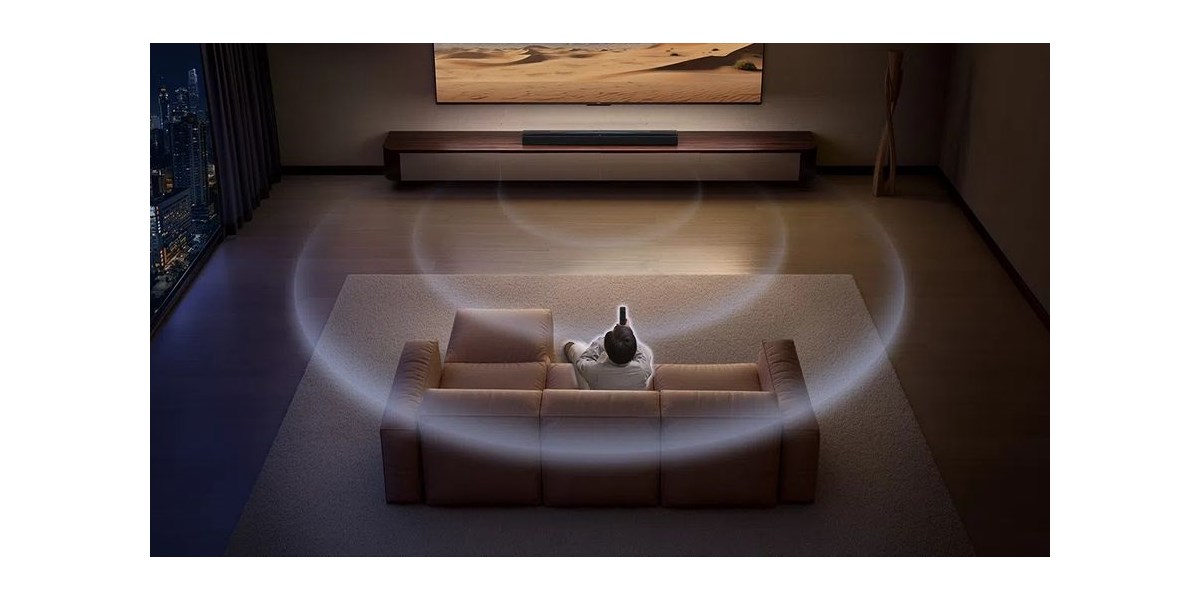 Grâce à la technologie AI Sonic, la barre de son analyse l’acoustique de votre pièce et ajuste automatiquement les paramètres audio. Cette calibration personnalisée optimise le son en fonction de la disposition de la pièce, pour une expérience toujours équilibrée, sans réglages manuels.