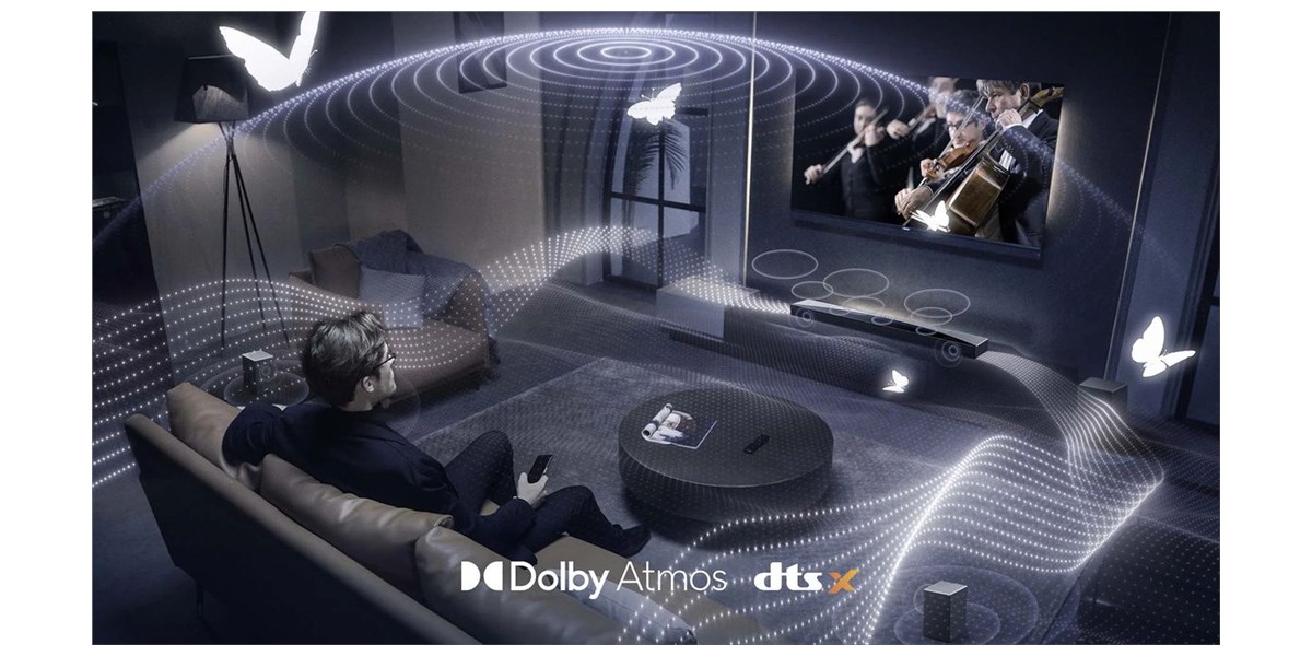 Les formats Dolby Atmos et DTS:X apportent une spatialisation verticale et horizontale, créant une scène sonore 360°. Les effets sonores se déplacent librement, les ambiances gagnent en ampleur, et les dialogues restent clairs, même dans les scènes les plus chargées.