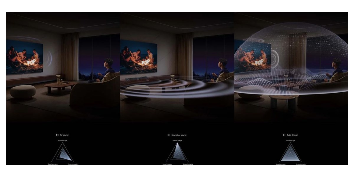 La technologie Ray•Danz de troisième génération garantit une scène sonore étendue sans traitement numérique artificiel. Grâce à des réflecteurs et des haut-parleurs inclinés, elle crée une diffusion naturelle du son à l’horizontale et à la verticale. L’effet est fluide, enveloppant et cohérent, parfait pour les films, les jeux et les concerts.
