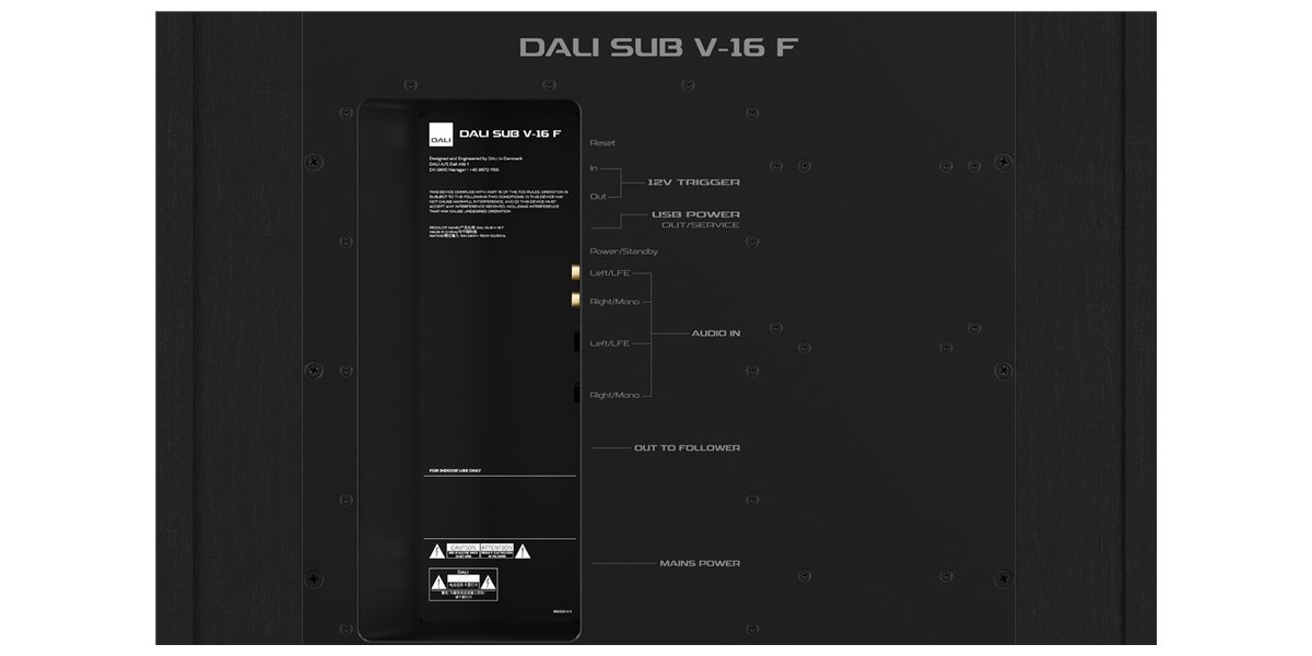 Le Dali Sub V-16 F propose des connexions RCA asymétriques et XLR symétriques, pour une compatibilité maximale avec les amplificateurs hi-fi et home-cinéma. Une sortie XLR permet de chaîner un second caisson, tandis que le port trigger 12 V facilite l’allumage automatique en synchronisation avec le reste du système. Plusieurs options sont disponibles pour ajuster le volume, la phase et la fréquence de coupure.