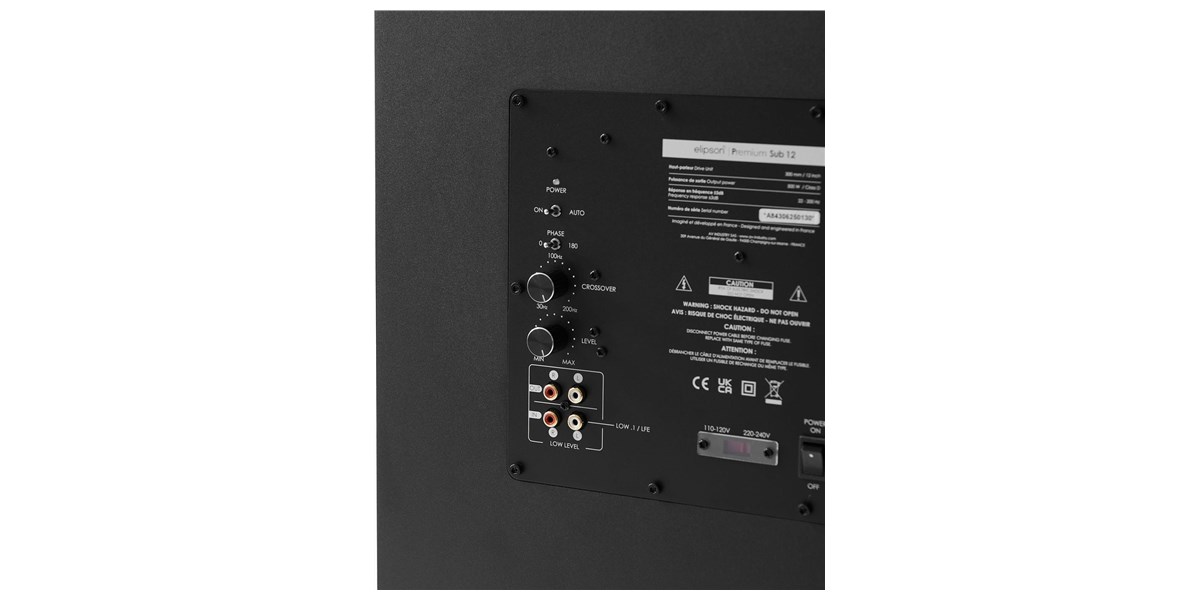 La fréquence de coupure réglable de 30 à 200 Hz facilite l’accord avec des enceintes compactes ou colonnes. Le sélecteur de phase 0°/180° aide à aligner le grave sur la scène sonore