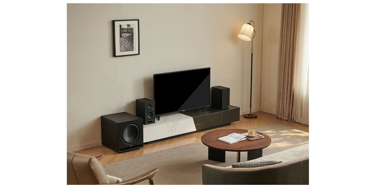Pensé pour les salons spacieux et les systèmes exigeants, ce caisson actif associe un haut-parleur de 300 mm en fibre de verre à une amplification de 500 W en classe D. La charge bass reflex laminaire frontale et une réponse de 22 à 200 Hz garantissent une extension sérieuse du grave avec maîtrise. Le DSP renforce l’assise à très basse fréquence, tandis que des réglages complets facilitent l’intégration en hi-fi comme en home-cinéma via les entrées L/R et LFE.