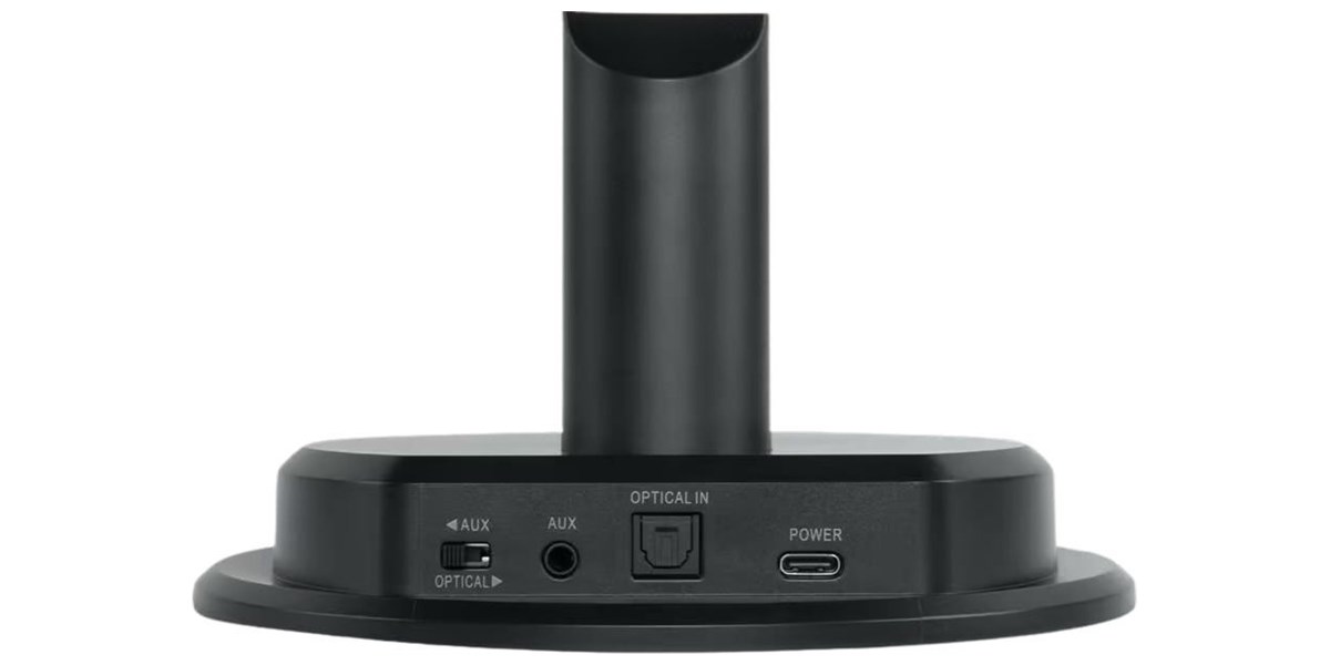 Le casque est livré avec une base qui fait à la fois office de support de recharge et d’émetteur sans fil. Elle se connecte facilement à votre téléviseur via une entrée optique, une prise mini-jack ou encore en USB-C, assurant une compatibilité maximale.