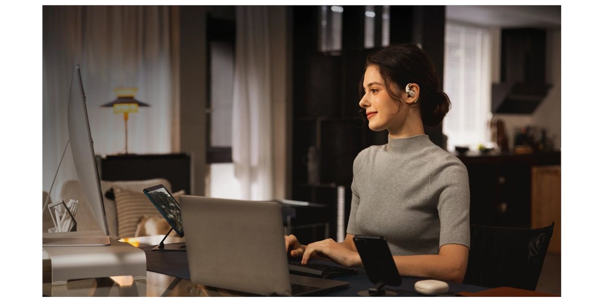 Chaque oreillette combine un transducteur dynamique avec un tweeter dédié, améliorant la précision des hautes fréquences tout en conservant des basses présentes grâce à la technologie OpenBass 2.0. Cette architecture offre un son équilibré, plus détaillé et plus immersif, sans jamais bloquer l’oreille.