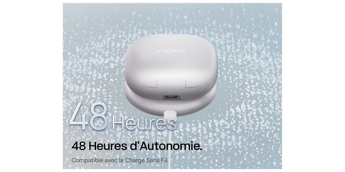 Les crochets d’oreille intègrent un fil mémoire ultra-fin qui épouse naturellement la forme de l’oreille, garantissant stabilité et maintien. Leur revêtement en silicone liquide offre une sensation douce et confortable, même après des heures d’écoute. Les pavés tactiles permettent de contrôler facilement la lecture et les appels, tandis que l’application Shokz donne accès à la personnalisation des commandes, aux modes DSP et aux réglages audio.