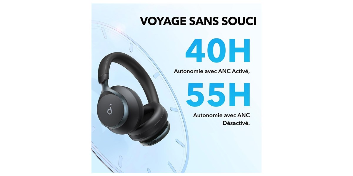 Avec jusqu’à 55 heures d’autonomie, ce casque accompagne plusieurs jours d’utilisation sans recharge. La charge rapide permet de récupérer rapidement plusieurs heures d’écoute, idéale pour les utilisateurs mobiles.