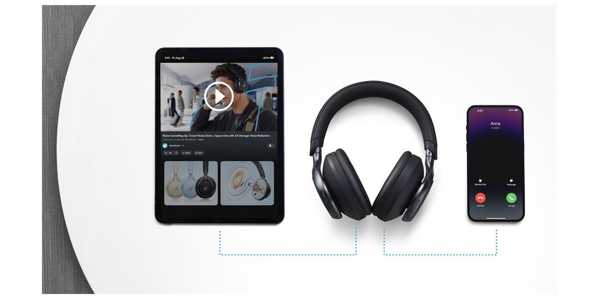 Grâce au Bluetooth 5.3, la connexion est stable et rapide. La fonction multipoint permet de connecter deux appareils simultanément et de basculer facilement entre eux, facilitant les usages professionnels et personnels.