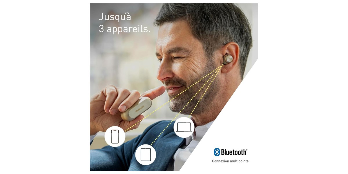 Grâce au Bluetooth 5.3, la connexion est stable et performante avec une latence réduite. La fonction multipoint permet de connecter plusieurs appareils simultanément pour basculer facilement entre eux.
