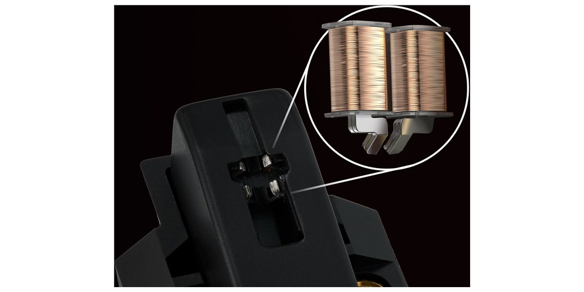 Les bobines para-toroïdales de la cellule sont fabriquées avec du cuivre PCUHD, un matériau à très haute pureté. Ce choix améliore la transmission du signal et renforce la clarté dans les basses fréquences. La structure optimisée des bobines réduit également le nombre de tours nécessaires, ce qui améliore la réponse transitoire et donne au son plus d’ouverture et de définition.