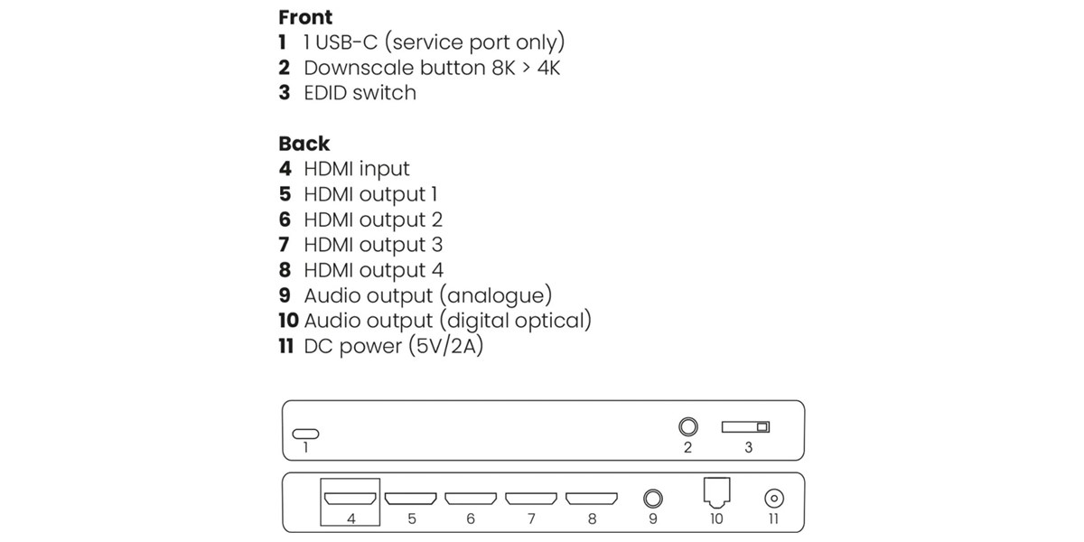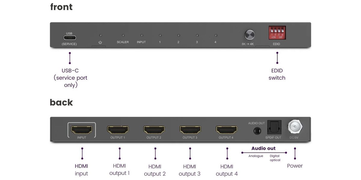 La polyvalence de cet équipement repose également sur ses nombreuses options de connectivité. Avec une entrée HDMI et quatre sorties HDMI, il s’adapte à de multiples scénarios d’utilisation. La présence d’une sortie audio optique ainsi que d’une sortie analogique en jack 3,5 mm permet de répondre à différents besoins en matière de diffusion sonore. Cette diversité de connexions facilite l’intégration dans des installations existantes et permet d’exploiter pleinement les équipements déjà en place.