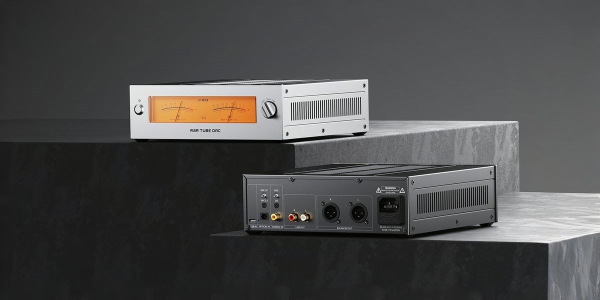 Ce DAC USB se distingue par son approche audiophile unique combinant conversion R2R passive et étage de sortie à tubes. Pensé pour les amateurs de sonorités analogiques, il offre une restitution riche, fluide et musicale tout en conservant une excellente précision. Son design rétro avec vu-mètres en façade renforce son caractère unique, en faisant un élément aussi esthétique que performant dans un système hi-fi.
