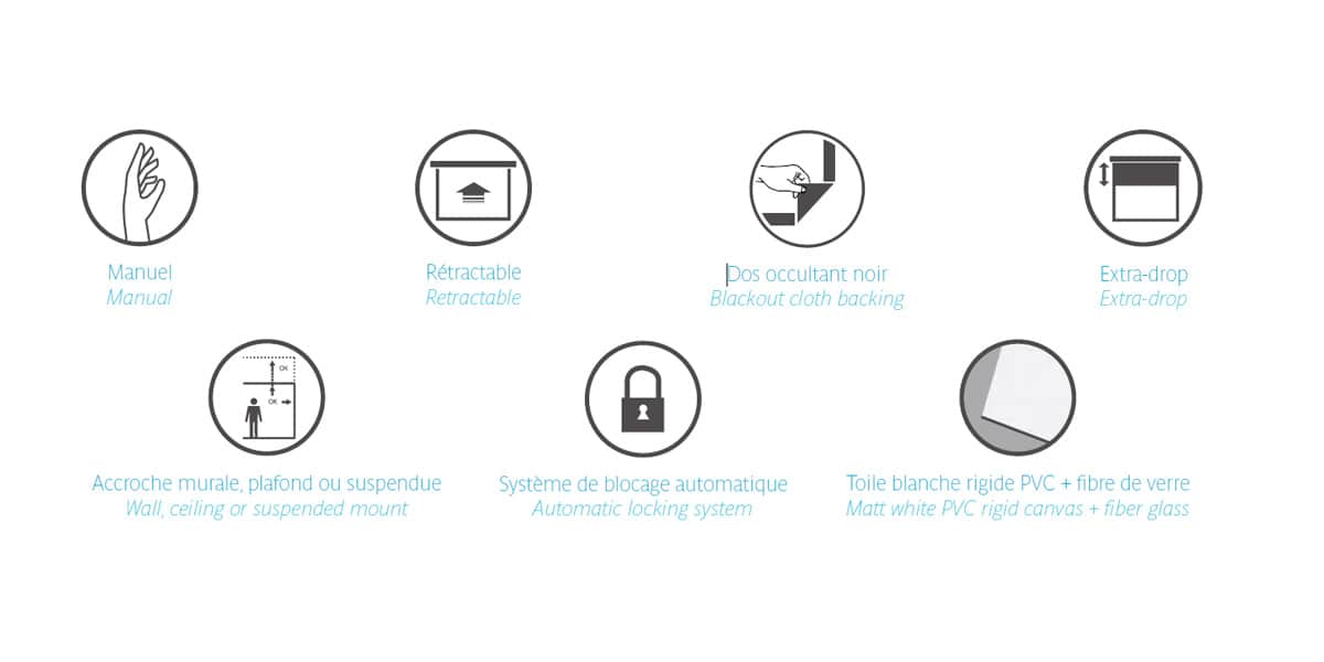 L'écran de projection Capitol Premium offre de nombreux atouts : toile traitée pour une image parfaite, bords noirs, extra-drop important en format 16:9 pour un meilleur contraste et un dos occultant pour le placer devant une fenêtre.