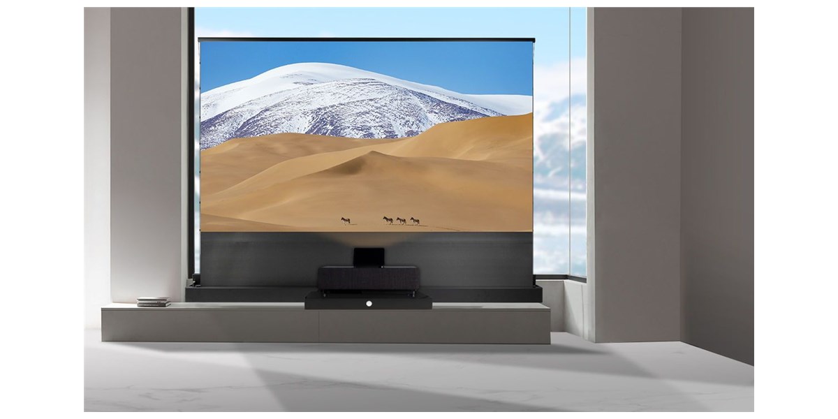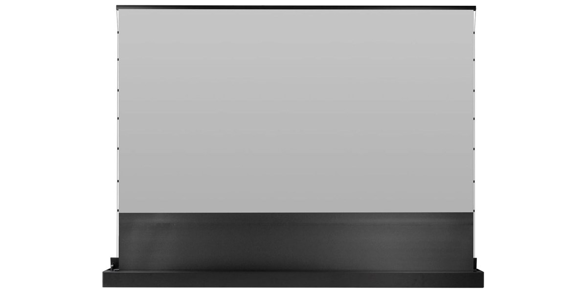 Le carter en acier laqué noir présente un format mince pensé pour s’intégrer facilement dans les intérieurs contemporains. Son design sobre facilite l’association avec les meubles TV, les murs sombres ou clairs et les espaces réduits où chaque centimètre compte. L’écran se rétracte entièrement dans le carter une fois refermé, préservant une esthétique épurée lorsque l’installation n’est pas utilisée. Ce fonctionnement motorisé apporte à la fois confort et discrétion, transformant la pièce en salle de projection en quelques instants, puis en espace de vie classique dès que la toile disparaît.
