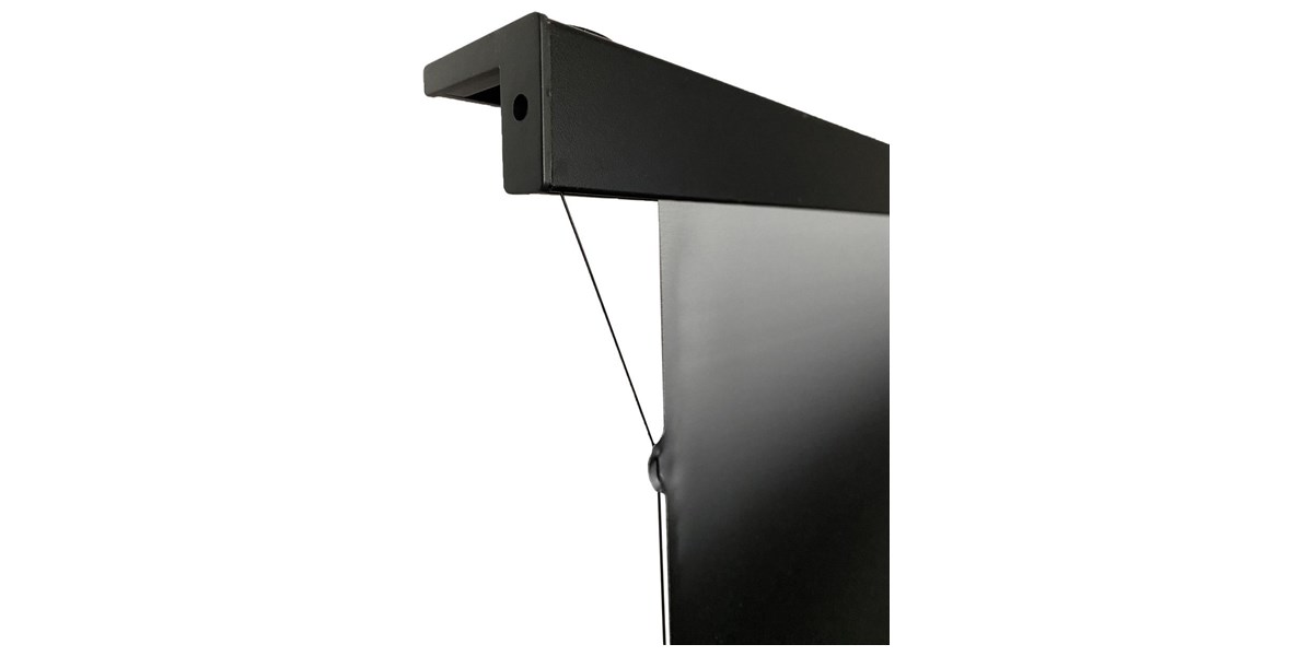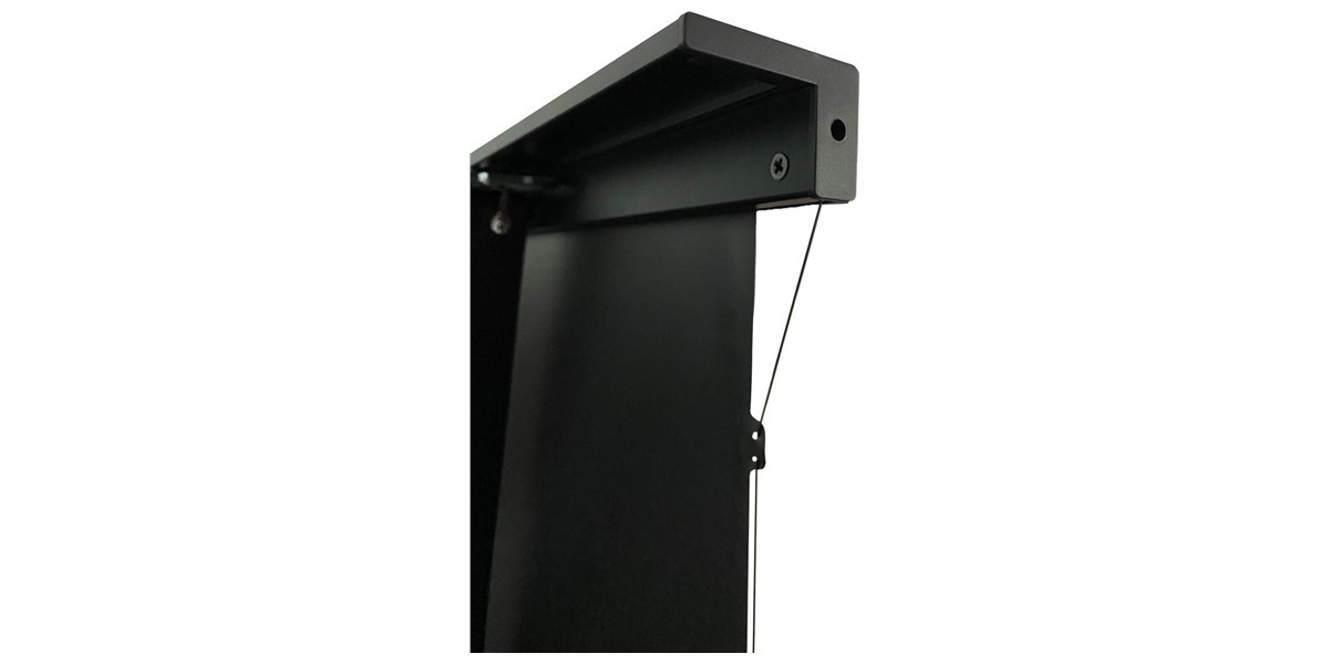 Le système de fixation par clips offre une mise en place simple et modulable. L’écran peut être fixé directement au mur, ou positionné à l’arrière d’un meuble bas, configuration particulièrement adaptée aux vidéoprojecteurs ultra courte focale. Cette liberté de placement facilite l’optimisation de la hauteur et du recul, tout en laissant la possibilité d’intégrer l’ensemble dans un aménagement sur mesure. La conception robuste du carter assure une grande stabilité une fois l’écran en place, pour un usage répétitif sans contrainte.
