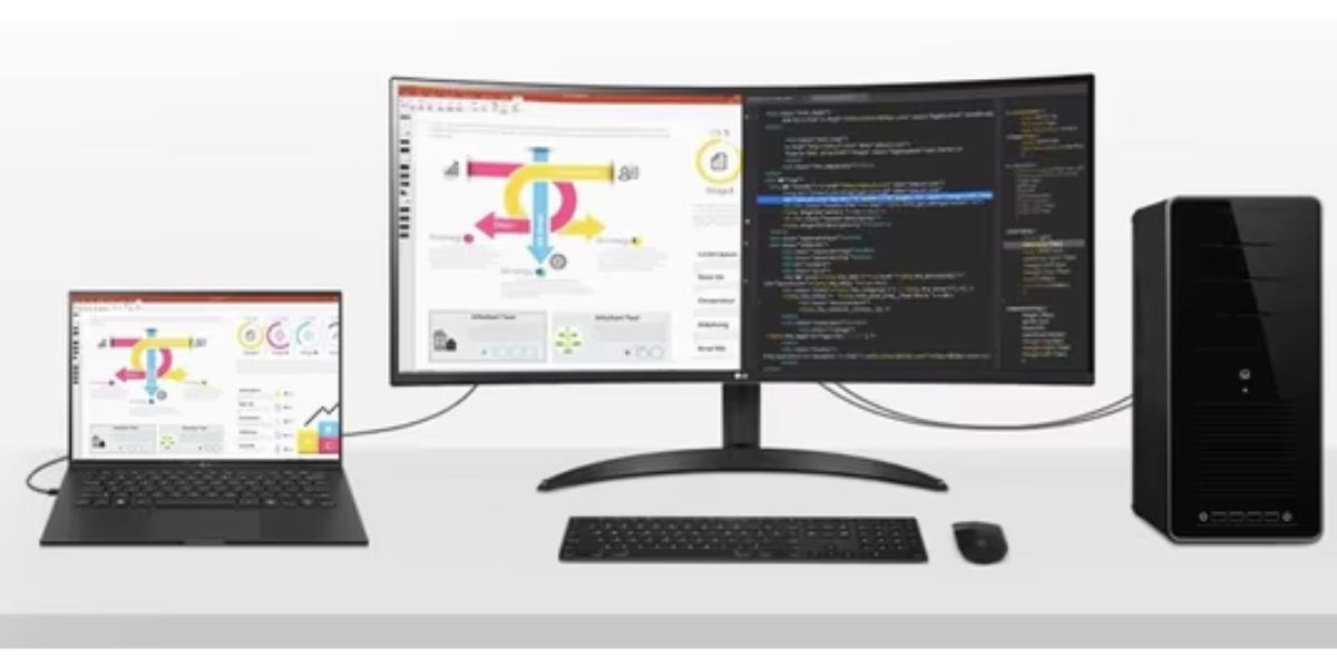 Grâce à la fonction image par image (PBP), le moniteur LG 34WR50QC-B permet d'afficher simultanément du contenu provenant de deux ordinateurs, facilitant ainsi le travail multitâche et la collaboration. Le logiciel OnScreen Control offre un contrôle simplifié des paramètres d'affichage, et la fonction Screen Split permet de diviser la zone d'affichage selon vos besoins.