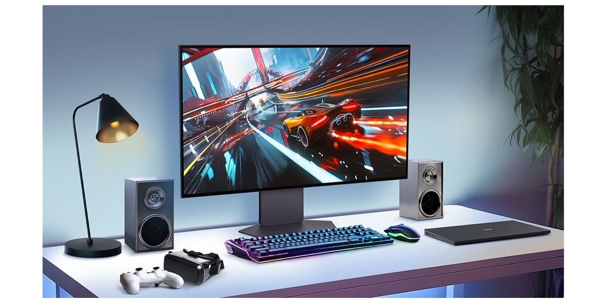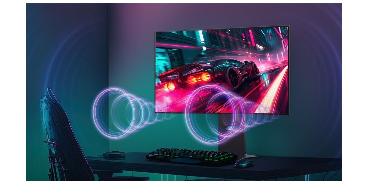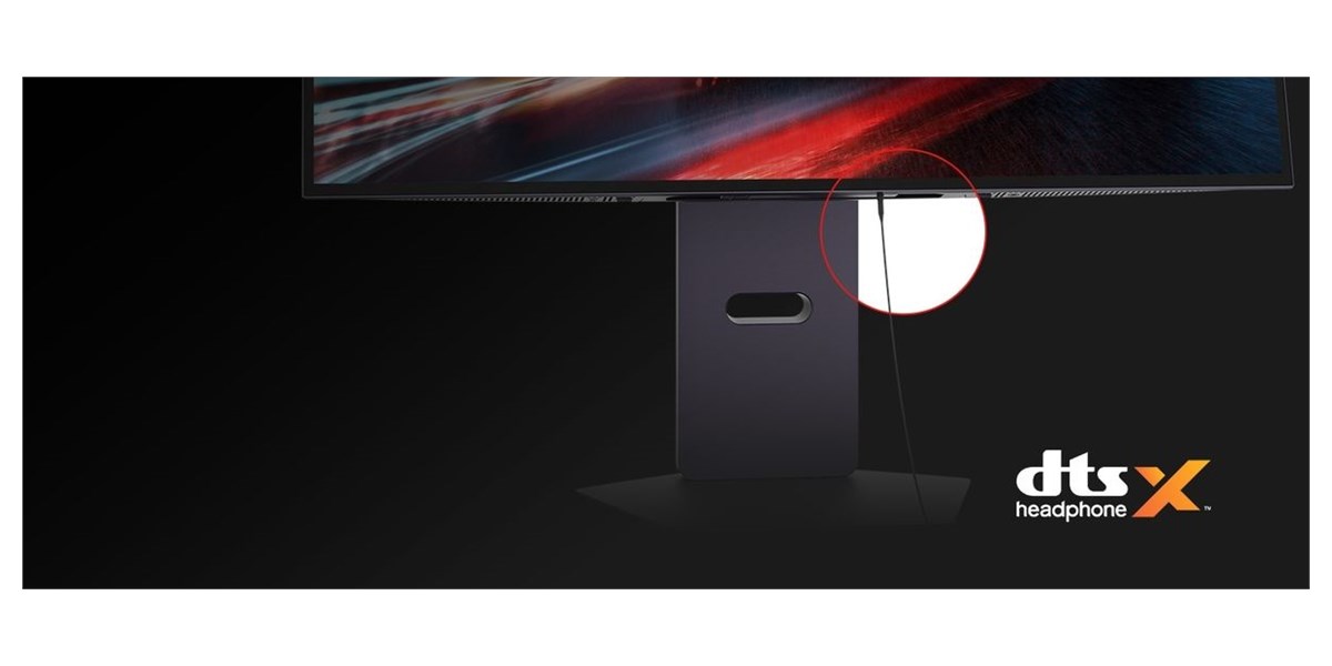 Ce moniteur intègre un port DisplayPort 2.1, deux HDMI 2.1, un USB-C compatible DisplayPort et Power Delivery 90 W, ainsi que deux ports USB-A. Côté audio, il est équipé de haut-parleurs 2x7 W avec DTS Virtual:X, d’une sortie casque 4 pôles compatible DTS Headphone:X pour une immersion sonore optimale sans ajout de périphérique externe.