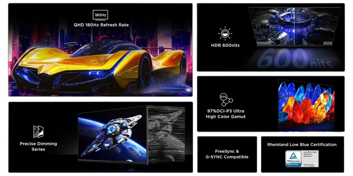 Grâce à sa fréquence de 180 Hz et son temps de réponse ultra-rapide de 1 ms (GTG), cet écran assure une réactivité optimale pour les jeux rapides et compétitifs. Il prend en charge FreeSync Premium et est compatible G-Sync, garantissant une image sans tearing ni saccades, quelle que soit la carte graphique utilisée.