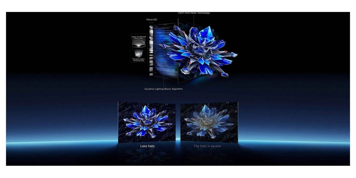 Développée par TCL CSOT, la technologie Fast-HVA améliore les panneaux VA traditionnels avec un meilleur contraste, une rotation des cristaux plus rapide et une consommation réduite. Elle permet également de limiter la lumière bleue sans altérer la fidélité des couleurs, pour un meilleur confort visuel.