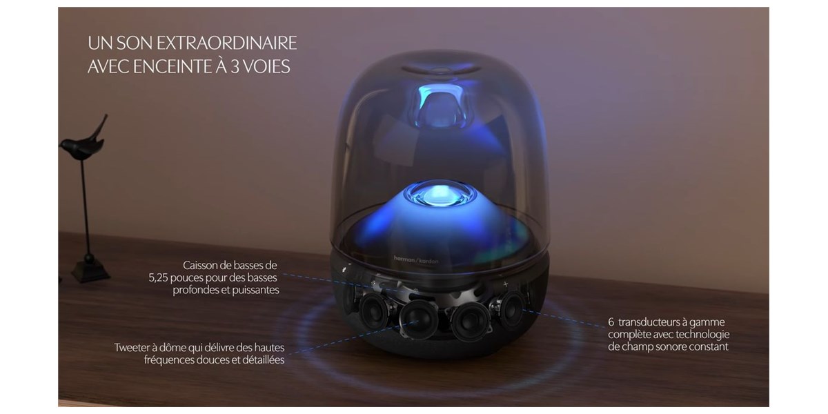 Avec son dôme transparent et sa base en tissu acoustique, cette enceinte adopte un design moderne et distinctif. Elle devient un véritable objet décoratif, capable de sublimer un intérieur tout en diffusant un son de qualité. Son esthétique soignée s’accompagne de matériaux durables, renforçant son positionnement haut de gamme.