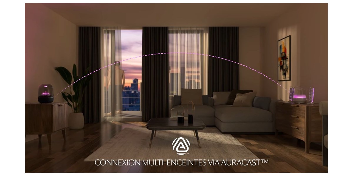 La compatibilité Auracast permet de connecter plusieurs enceintes entre elles sans fil afin de créer un système audio étendu. Il devient possible de diffuser la musique simultanément sur plusieurs appareils compatibles pour renforcer l’immersion sonore. Cette technologie facilite également la création d’une configuration stéréo pour une scène sonore encore plus large.