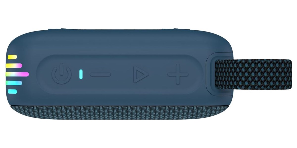 Avec ses dimensions réduites (98 x 76 x 40 mm) et un poids plume de 225 g, cette enceinte se transporte aisément dans un sac ou une valise. Elle est livrée avec une sangle en tissu, et son éclairage LED intégré offre une touche lumineuse discrète, idéale en soirée. Son design robuste et sobre en fait une enceinte aussi pratique qu’agréable à utiliser au quotidien.
