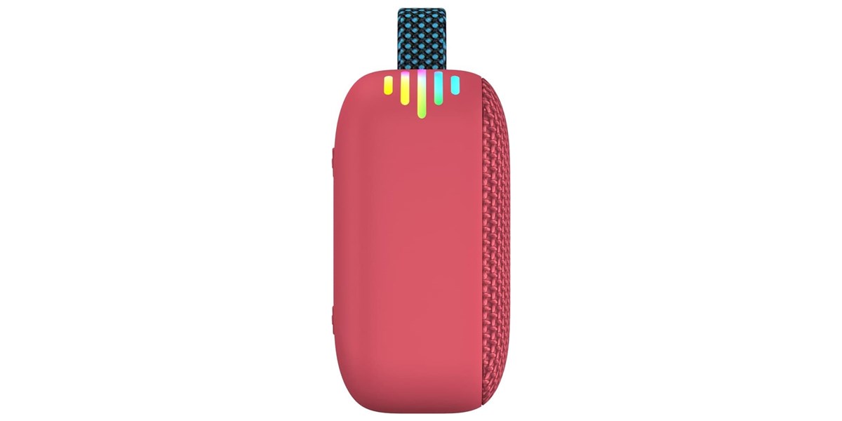 Avec ses dimensions réduites (98 x 76 x 40 mm) et un poids plume de 225 g, cette enceinte se transporte aisément dans un sac ou une valise. Elle est livrée avec une sangle en tissu, et son éclairage LED intégré offre une touche lumineuse discrète, idéale en soirée. Son design robuste et sobre en fait une enceinte aussi pratique qu’agréable à utiliser au quotidien.