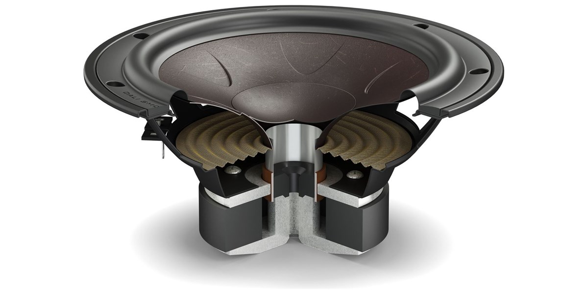 Dali a développé en interne un tweeter à dôme souple de 29 mm, plus large que la moyenne, afin d’assurer une transition fluide avec le haut-parleur médium-grave. Cette conception favorise une restitution précise et détaillée des hautes fréquences jusqu’à 26 kHz, tout en évitant toute dureté. Grâce à une plaque frontale en aluminium optimisée, la diffusion des aigus reste homogène et stable, même hors axe, garantissant une scène sonore ample et bien définie dans toutes les configurations d’écoute.