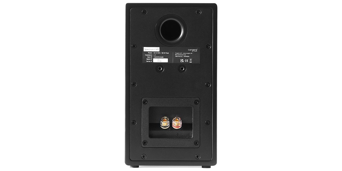 La Tangent Spectrum II X4 adopte une conception 2 voies bass-reflex avec évent arrière, pensée pour optimiser la réponse dans le grave malgré un format réduit. Elle est équipée d’un tweeter à dôme textile de 25 mm, offrant une restitution précise et aérienne des hautes fréquences, et d’un haut-parleur médium/grave de 10 cm en pulpe de cellulose, apprécié pour sa rapidité et son naturel. L’ensemble forme une scène sonore ample et équilibrée, parfaite pour les petites et moyennes pièces.