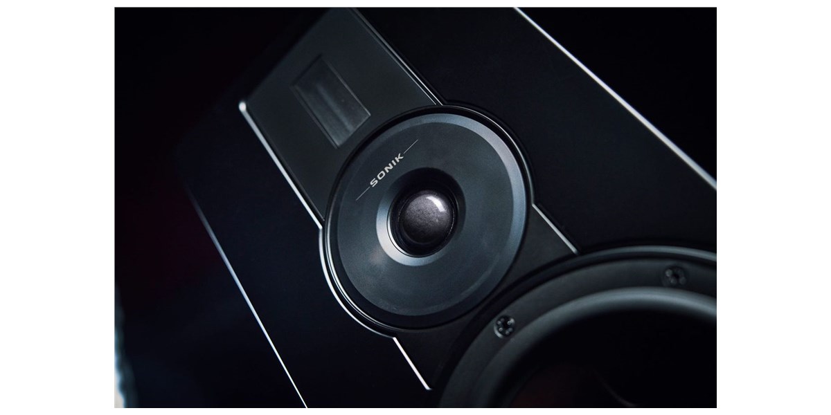 Le tweeter hybride de la Sonik 7 associe un dôme souple de 29 mm à un tweeter à ruban de 17 x 45 mm, chacun spécialisé dans une partie du spectre. Le dôme prend en charge les hautes fréquences jusqu’à 14 kHz, assurant une cohérence tonale avec les haut-parleurs médium/grave. Au-delà, le ruban à technologie planar magnétique prend le relais pour restituer les aigus avec transparence et finesse. Ce duo permet une diffusion étendue, stable et immersive, avec une scène sonore qui gagne en profondeur et en réalisme.