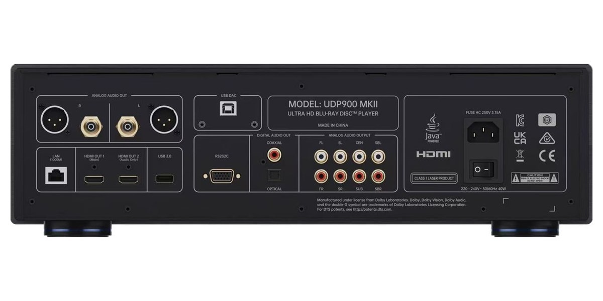 Ce lecteur embarque deux DAC ESS9038PRO distincts, un pour la stéréo, l’autre pour le multicanal, garantissant une qualité de conversion sans compromis. Les sorties XLR symétriques et RCA asymétriques bénéficient d’un design audio premium, offrant un son détaillé, équilibré et d’une grande pureté. Il peut également fonctionner comme DAC externe USB, capable de décoder les flux PCM jusqu’à 768 kHz et les DSD jusqu’au DSD512.
