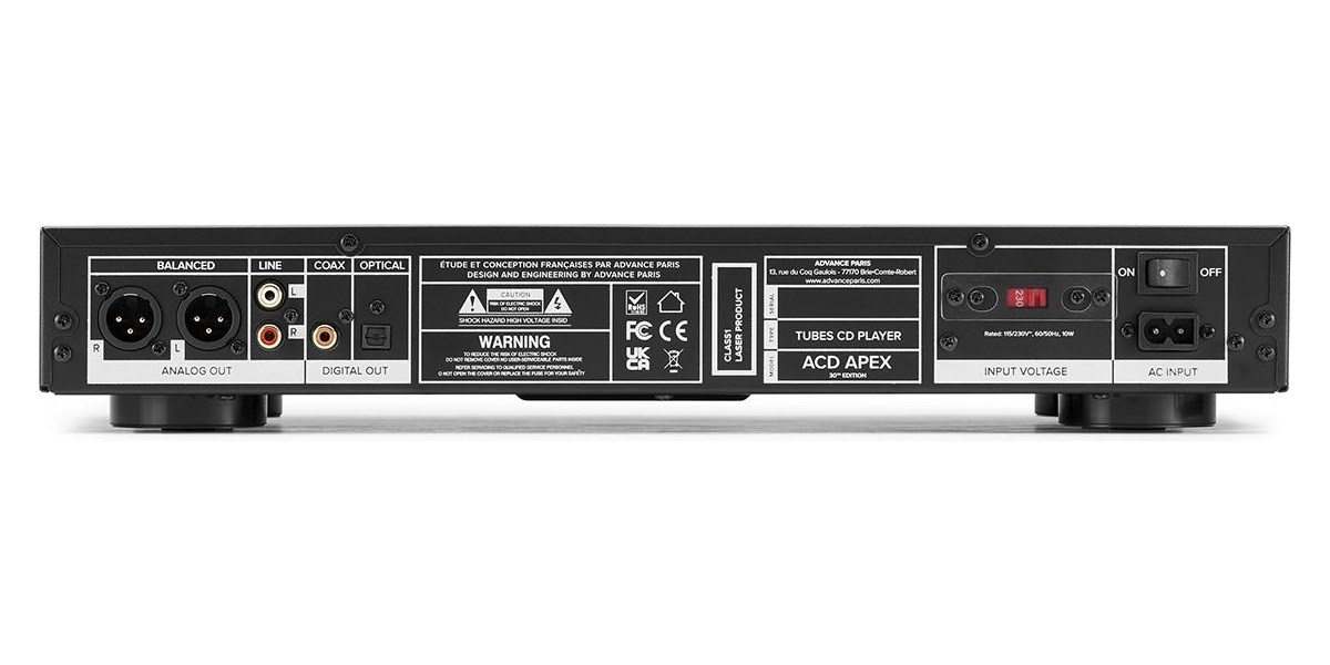 Pour célébrer ses 30 ans, **Advance Paris** a doté le lecteur CD ACD Apex d’un design sobre mais distinctif, avec une finition noire élégante et un VU-mètre rétro-éclairé emblématique. Ce VU-mètre, inspiré des appareils vintage, n'est pas seulement un élément esthétique, mais aussi un outil permettant de visualiser en temps réel le niveau du signal, apportant une touche dynamique et intemporelle à votre installation.