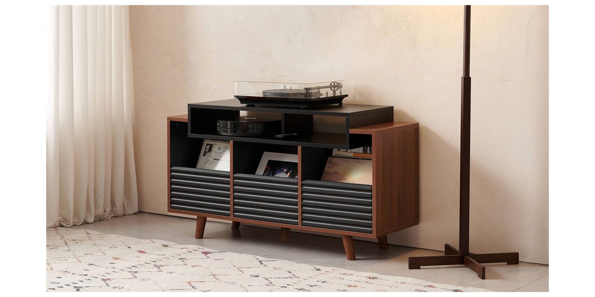 Conçu pour les passionnés de vinyle, le NorStone Oslo 1200 offre une solution complète et élégante pour accueillir une platine, des électroniques et une vaste collection de disques. Ce meuble allie un design raffiné à une conception robuste, parfaitement adaptée à un système hi-fi complet. Son format généreux permet d’organiser avec soin l’ensemble de votre matériel audio tout en le mettant en valeur dans votre intérieur.