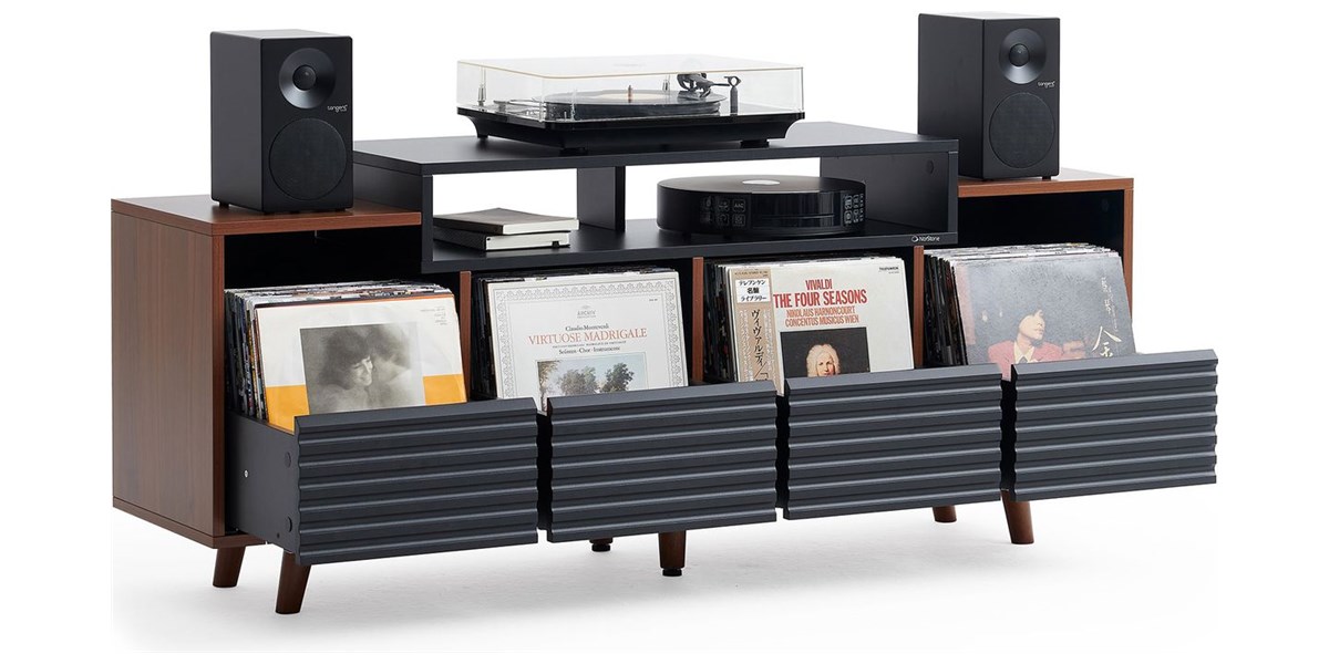 Avec ses quatre tiroirs spacieux, le NorStone Oslo 1600 offre un espace de stockage allant jusqu’à 320 disques vinyle. Chaque tiroir, équipé d’un grip antidérapant, assure un rangement vertical et sécurisé. Cette configuration est idéale pour les amateurs de musique disposant d’une collection conséquente souhaitant la conserver à portée de main tout en préservant l’ordre et l’esthétique de leur espace.