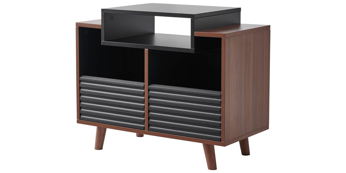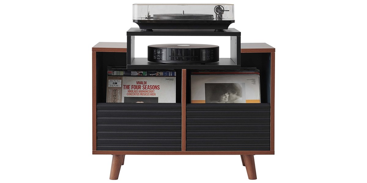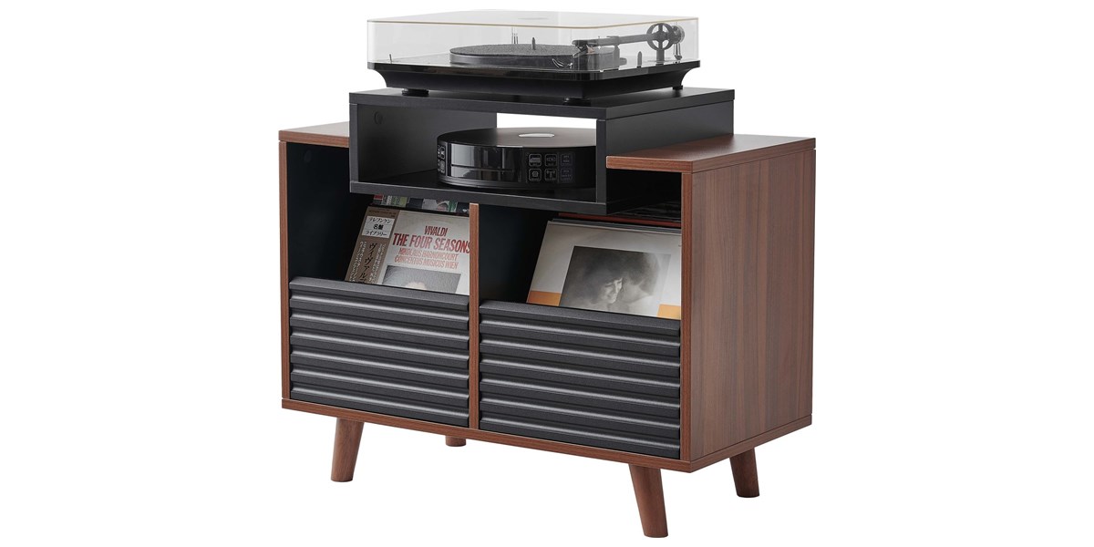 Ce meuble se distingue par ses deux tiroirs spécialement conçus pour stocker des disques vinyle. Chaque tiroir peut accueillir jusqu’à 80 galettes, soit une capacité totale de 160 disques. Ces tiroirs sont équipés d’un système de grip antidérapant assurant un rangement stable et sécurisé. Grâce à ce dispositif, vos vinyles restent parfaitement droits, sans risque de basculement.