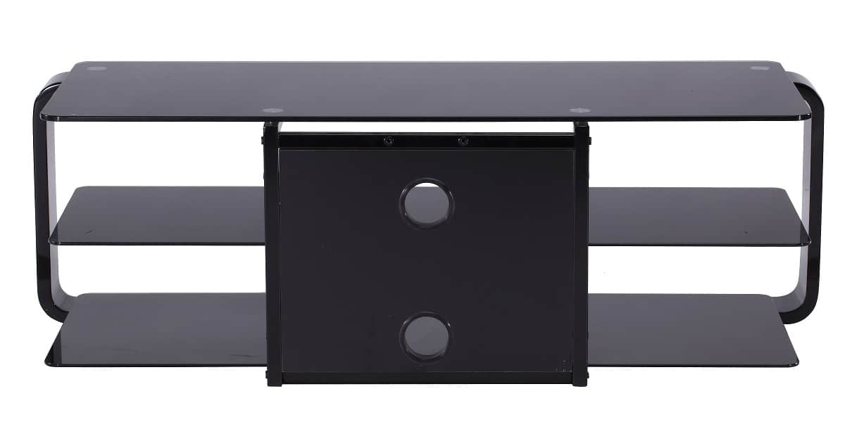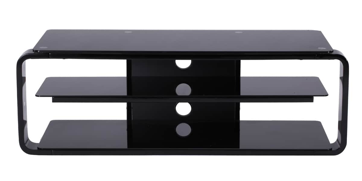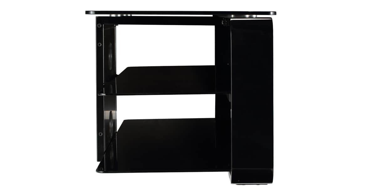 Les 3 étagères en verre trempé sécurit noir, résistants aux chocs, pourront accueillir l'ensemble de vos périphériques. Le plateau inférieur peut accueillir une barre de son allant jusqu'à 110 cm. Sa conception aérée, permettra d'éviter la surchauffe. Vous pourrez cacher vos câbles aisément grâce à son système de passe-câbles situé à l’arrière du meuble.