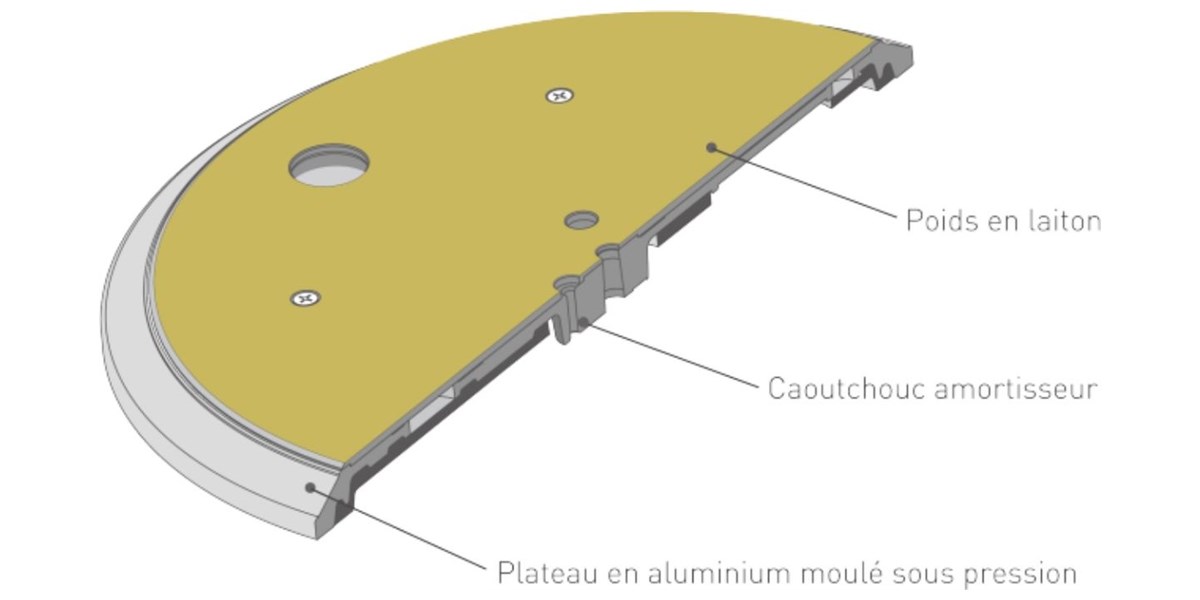 Le châssis repose sur une construction multicouche combinant aluminium, BMC et caoutchouc pour supprimer toute vibration parasite. Cette structure ultra-rigide permet une restitution sonore sans distorsion, tandis que le capot en aluminium brossé de 10 mm renforce l’aspect premium et la robustesse de l’ensemble.