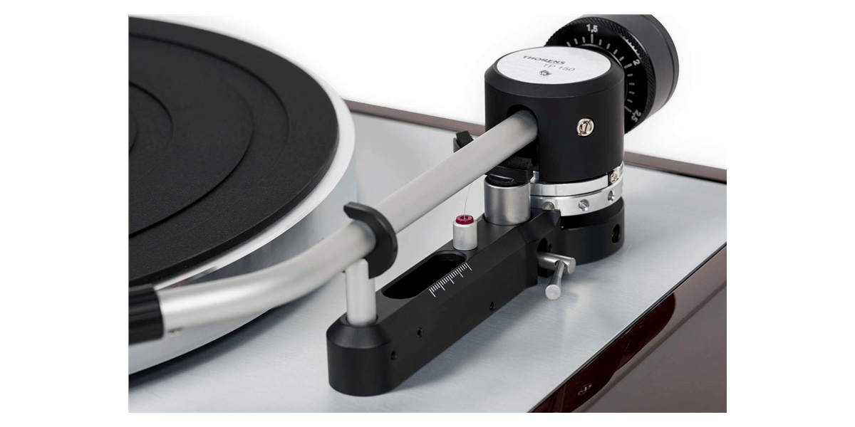 La platine vinyle Thorens TD 403 DD est nantie d’un bras de lecture coudé que vous pouvez régler en azimut ou en hauteur. Pesant 14 grammes, ce bras est muni d’un connecteur SME. Ce qui lui permet de se substituer au porte-cellule.