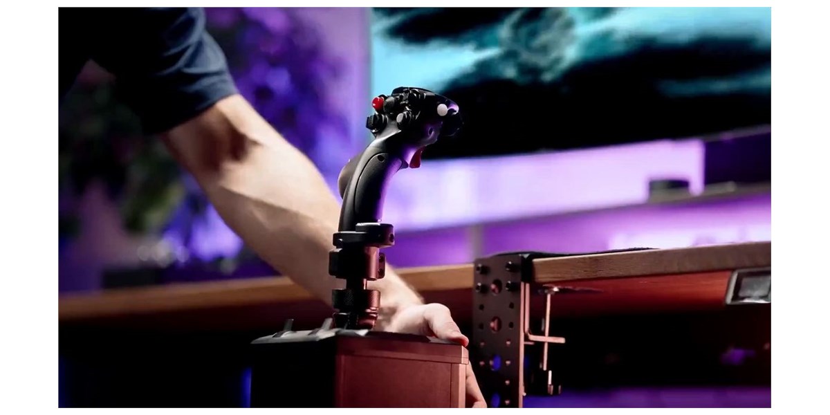 Inspiré des avions de chasse, le joystick offre une prise en main naturelle et intuitive. Sa conception favorise un pilotage précis et confortable, même lors de longues sessions.